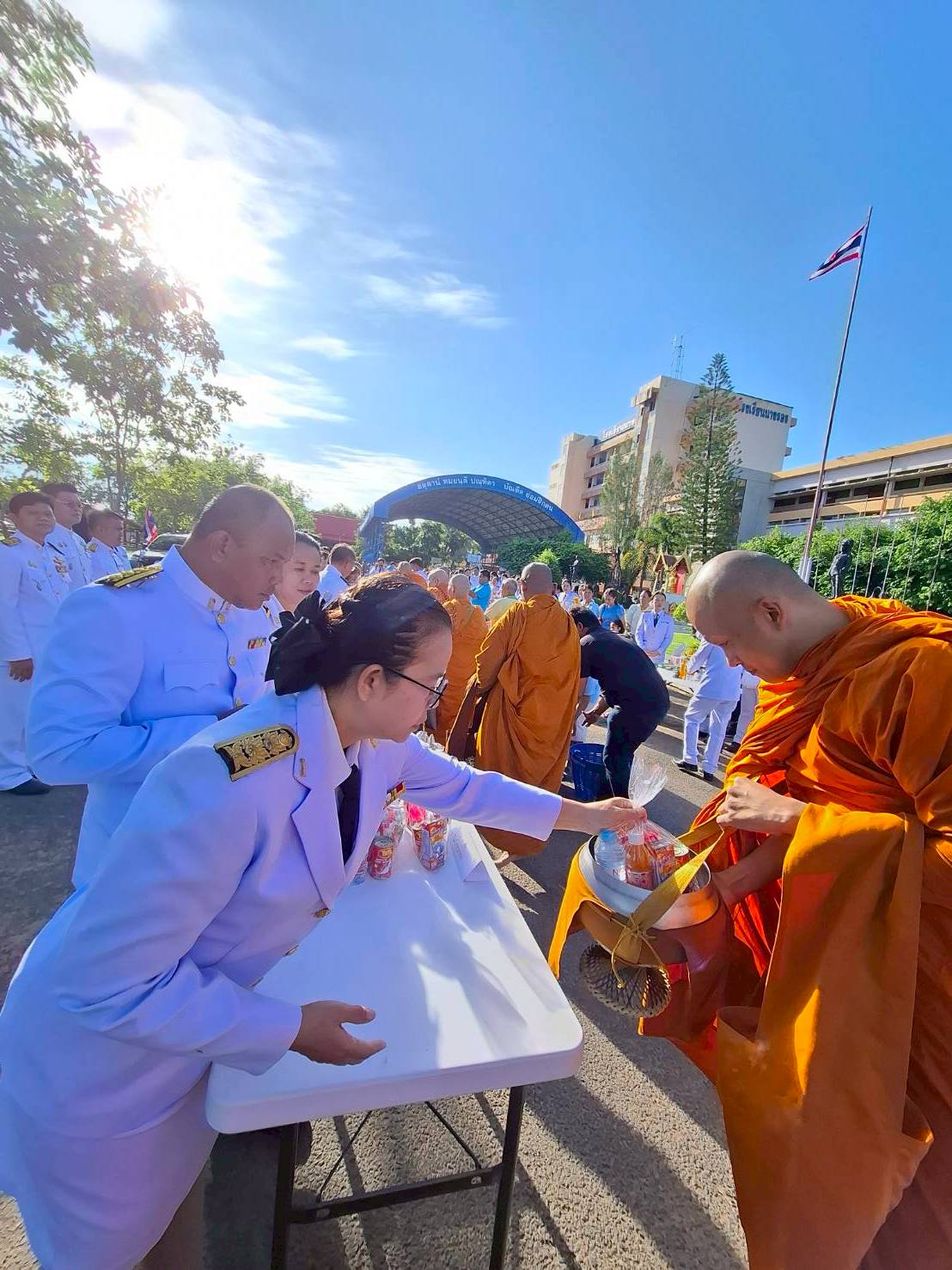 ร่วมพิธีเจริญพระพุทธมนต์ ทำบุญตักบาตรถวายพระราชกุศล และพิธีถวายเครื่องราชสักการะ วางพานพุ่ม และจุดเทียนถวายพระพรชัยมงคล สมเด็จพระนางเจ้าสิริกิติ์ พระบรมราชินีนาถ พระบรมราชชนนีพันปีหลวง เนื่องในโอกาสวันเฉลิมพระชนมพรรษา 12 สิงหาคม 2568