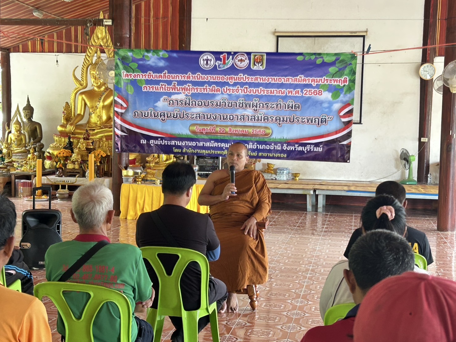 กรมคุมประพฤติ กระทรวงยุติธรรม โดยสำนักงานคุมประพฤติจังหวัดบุรีรัมย์ สาขานางรอง วันศุกร์ที่ ๒๒ สิงหาคม ๒๕๖๘ นายชัยสิทธิ์ เครือสูงเนิน ผู้อำนวยการสำนักงานคุมประพฤติจังหวัดบุรีรัมย์ สาขานางรอง มอบหมายให้ฝ่ายยุทธศาสตร์การคุมความประพฤติ ร่วมกับอาสาสมัครคุมประพฤติอำเภอชำนิจัดโครงการฝึกอบรมอาชีพให้กับผู้ถูกคุมความประพฤติ ณ ศูนย์ประสานงานอาสาสมัครคุมประพฤติอำเภอชำนิ โดยมี ประครูปลัดวิชาญ ธัมมโชโต เจ้าอาวาสวัดพุทธบูชาป่าโคกปราสาท เป็นประธานในพิธีเปิดโครงการ ซึ่งกิจกรรมในครั้งนี้ได้รับความอนุเคราะห์จากวิทยากร มาบรรยายให้ความรู้ในหัวข้อ "นโยบายในการดำเนินงานศูนย์คุมประพฤติภาคประชาชน" บรรยายโดย นางสาววิจิตรา เนียมหัตถี พนักงานคุมประพฤติปฏิบัติการ และในหัวข้อ"การสร้างแรงจูงใจในการประกอบอาชีพและการดำเนินชีวิตตามหลักปรัชญา" บรรยายโดย นายคำ สีภา ประธานอาสาสมัครคุมประพฤติอำเภอหนองกี่ และการฝึกอบรมปฏิบัติวิชาชีพ การทำไม้กวาดทางมะพร้าว กิจกรรมในครั้งนี้ มีผู้ถูกคุมความประพฤติ เข้าร่วมจำนวน 15 คนฝึกอาชีพชำนิ_01