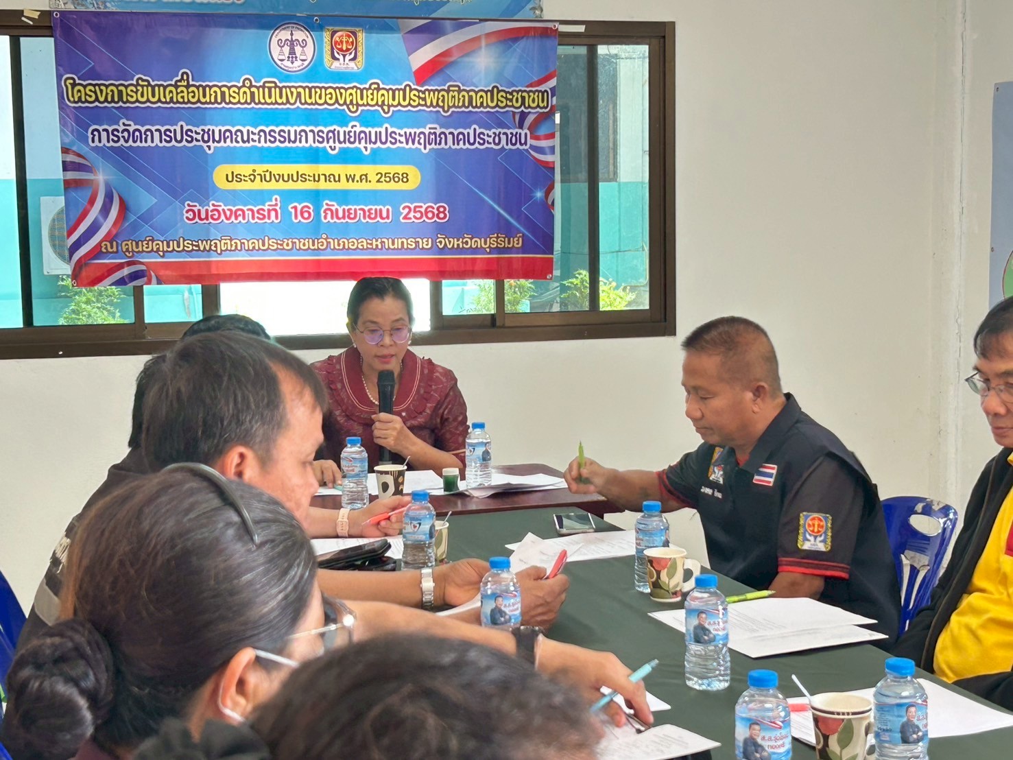 กรมคุมประพฤติ กระทรวงยุติธรรม โดยสำนักงานคุมประพฤติจังหวัดบุรีรัมย์ สาขานางรอง วันที่ 16 กันยายน 2568 ระหว่างเวลา 09.00 - 16.30 นาฬิกา นายชัยสิทธิ์ เครือสูงเนิน ผู้อำนวยการสำนักงานคุมประพฤติจังหวัดบุรีรัมย์ สาขานางรอง มอบหมายให้ หัวหน้าฝ่ายยุทธศาสตร์การคุมประพฤติ ,หัวหน้าฝ่ายคุมประพฤติพื้นที่ และคณะเจ้าหน้าที่ ดำเนินการจัดประชุมคณะกรรมการศูนย์คุมประพฤติภาคประชาชนอำเภอละหานทราย จังหวัดบุรีรัมย์ ประจำปีงบประมาณ พ.ศ.2568 ณ ห้องประชุมศูนย์คุมประพฤติภาคประชาชนอำเภอละหานทราย จังหวัดบุรีรัมย์ เพื่อชี้แจงนโยบายของกรมคุมประพฤติ กำหนดแนวทางในการขับเคลื่อนการปฏิบัติงานของศูนย์คุมประพฤติภาคประชาชน และจัดทำแผนปฏิบัติงานของศูนย์คุมประพฤติภาคประชาชนอำเภอละหานทราย ประจำปีงบประมาณ พ.ศ. 2569 พร้อมทั้งรับฟังปัญหาอุปสรรคในการปฏิบัติงาน ตลอดจนแลกเปลี่ยนความคิดเห็นในการปฏิบัติงานของศูนย์คุมประพฤติภาคประชาชนอำเภอละหานทราย โดยมีคณะกรรมการเข้าร่วม จำนวน 15 คนประชุมศูนย์คุมประพฤติภาคประชาชนอำเภอละห_01